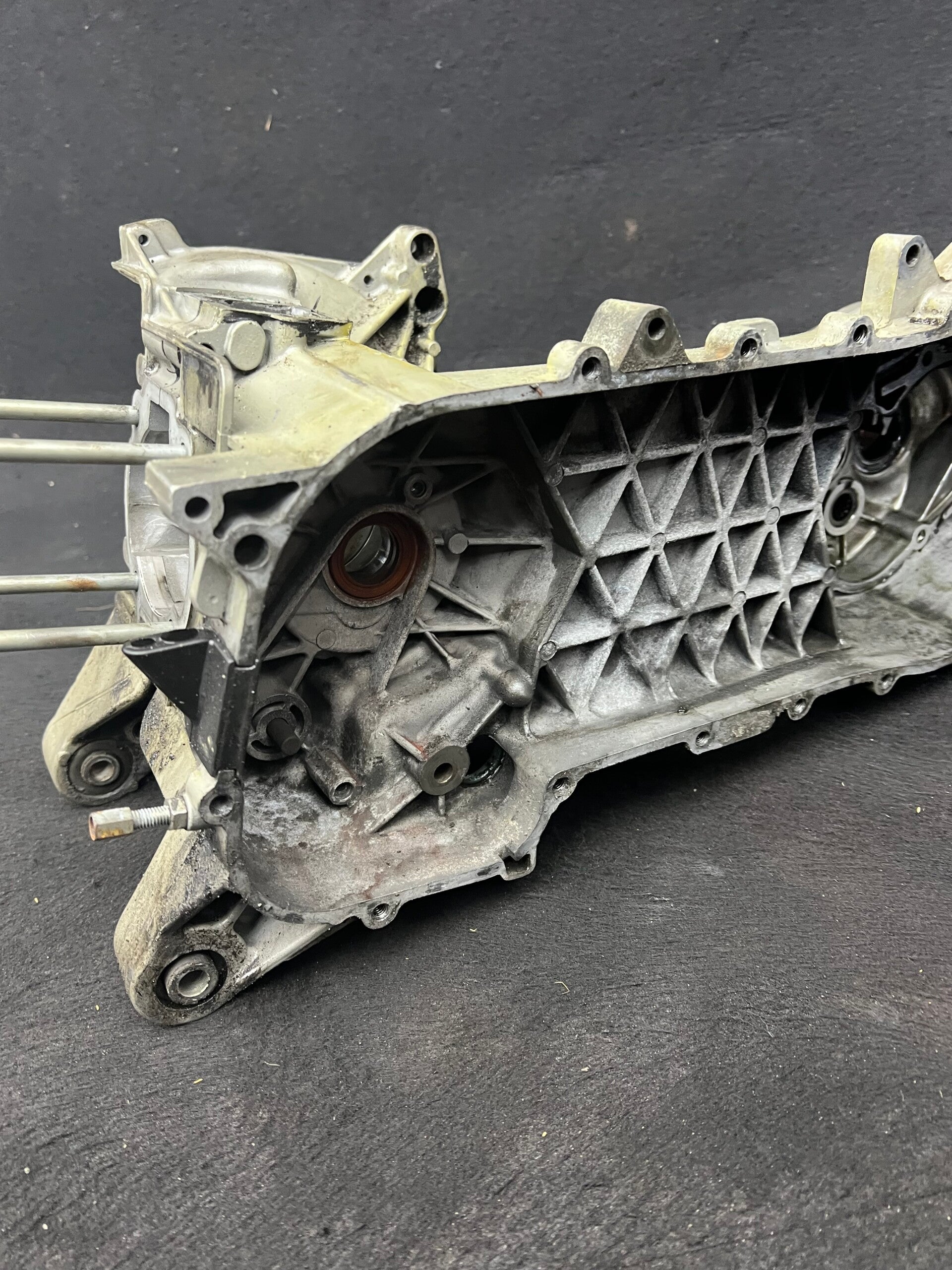 Piaggio Skr 125 carter, gestraald en een coating overheen voor de vuil die kan je er zo af spoelen.