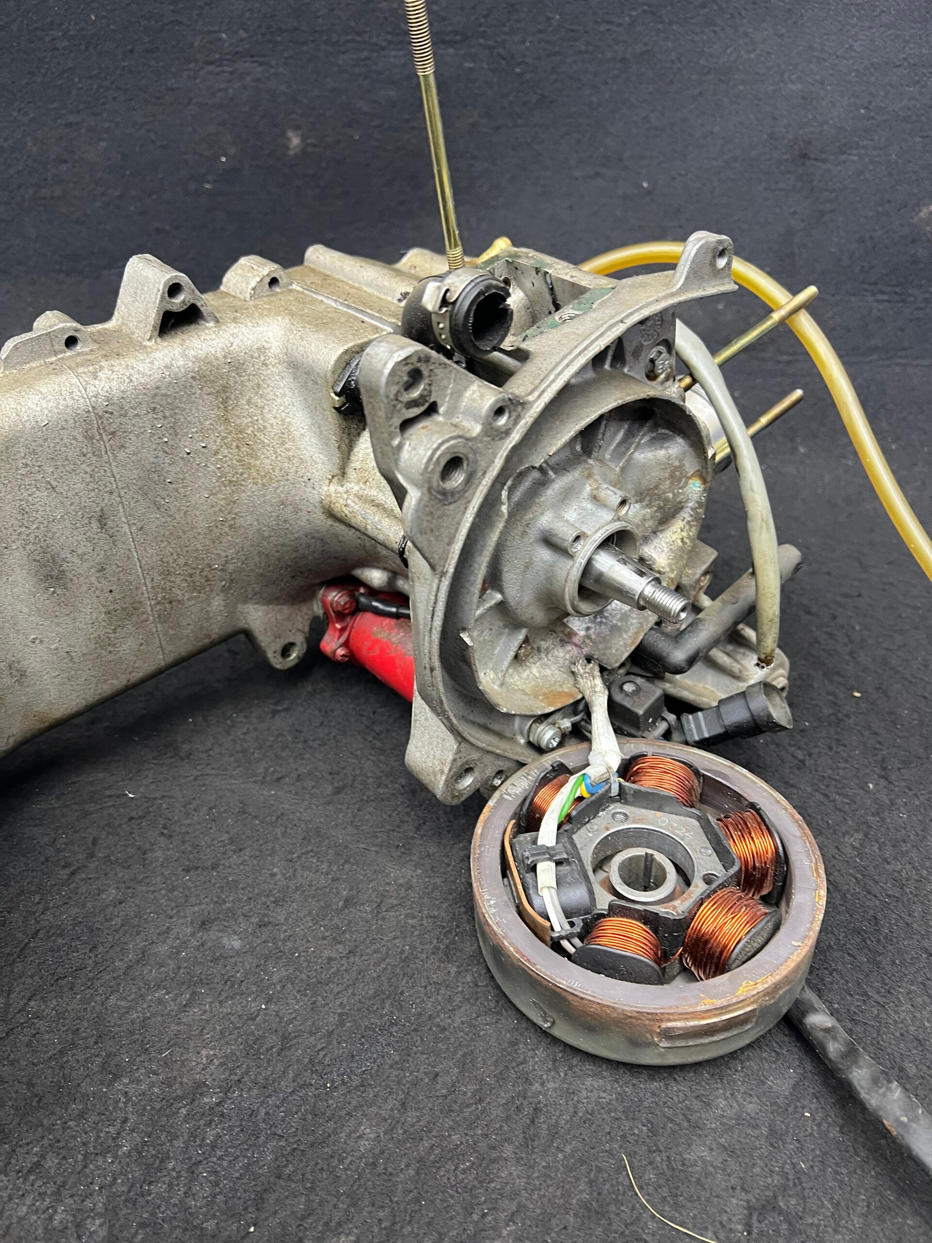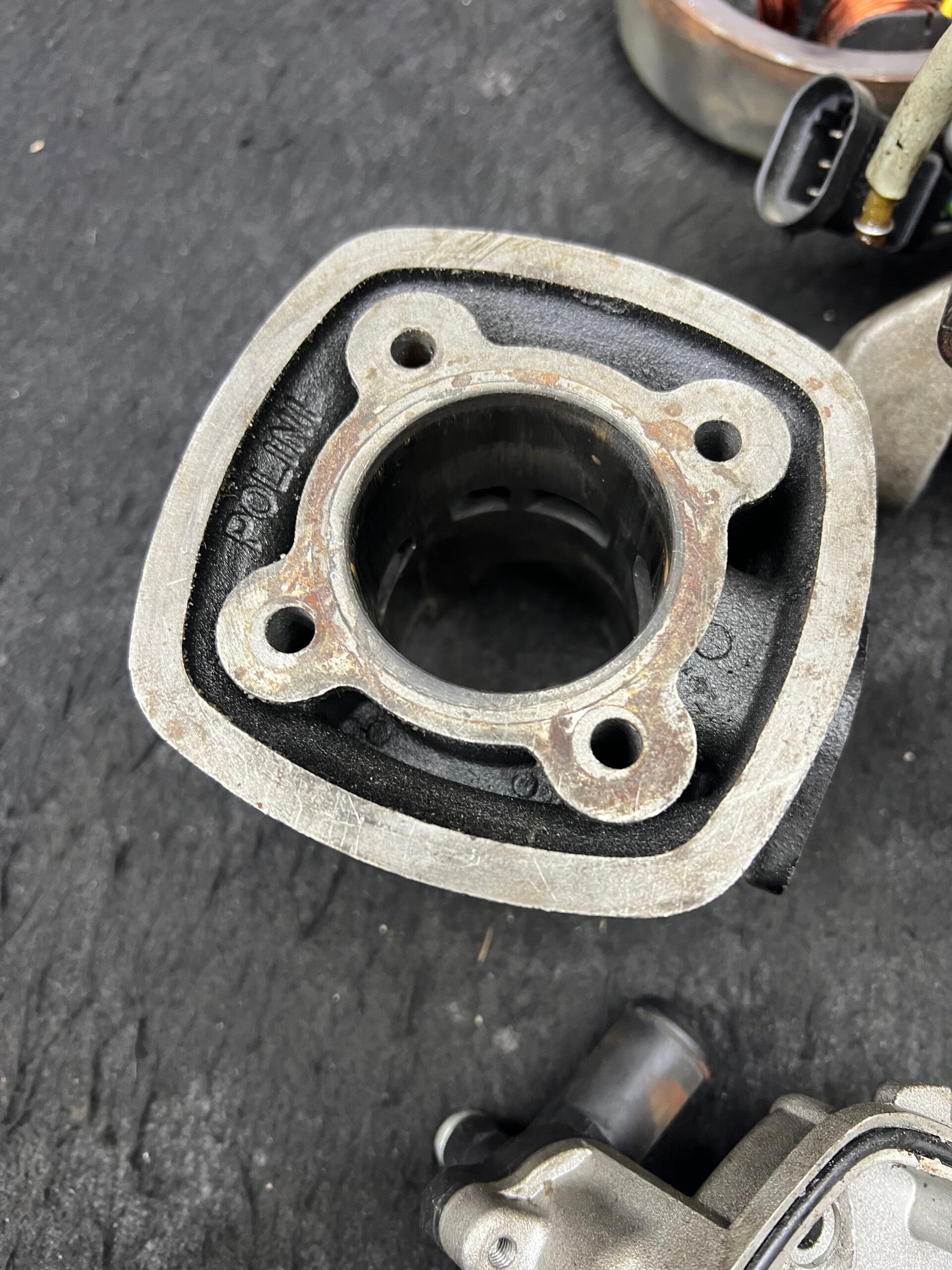 Gilera runner Carter 70 cc Polini met Polini kruk en dd schijf en brom vertanding en onskteking LET OP 1 tapende afgebroken er in die ziet er wel bij maar je moet uitboren