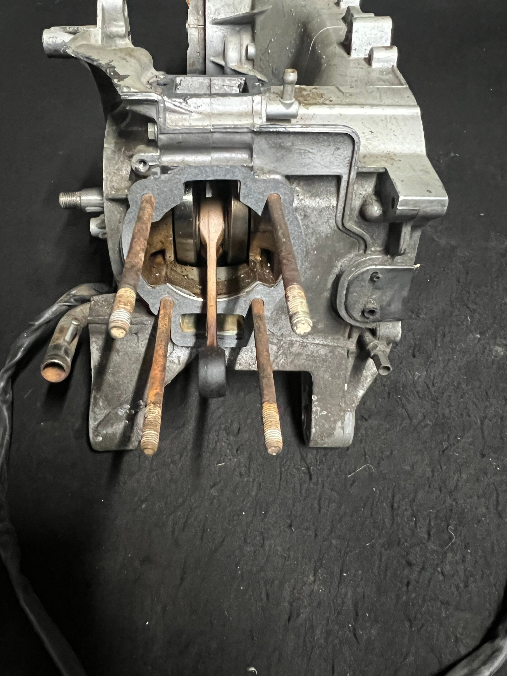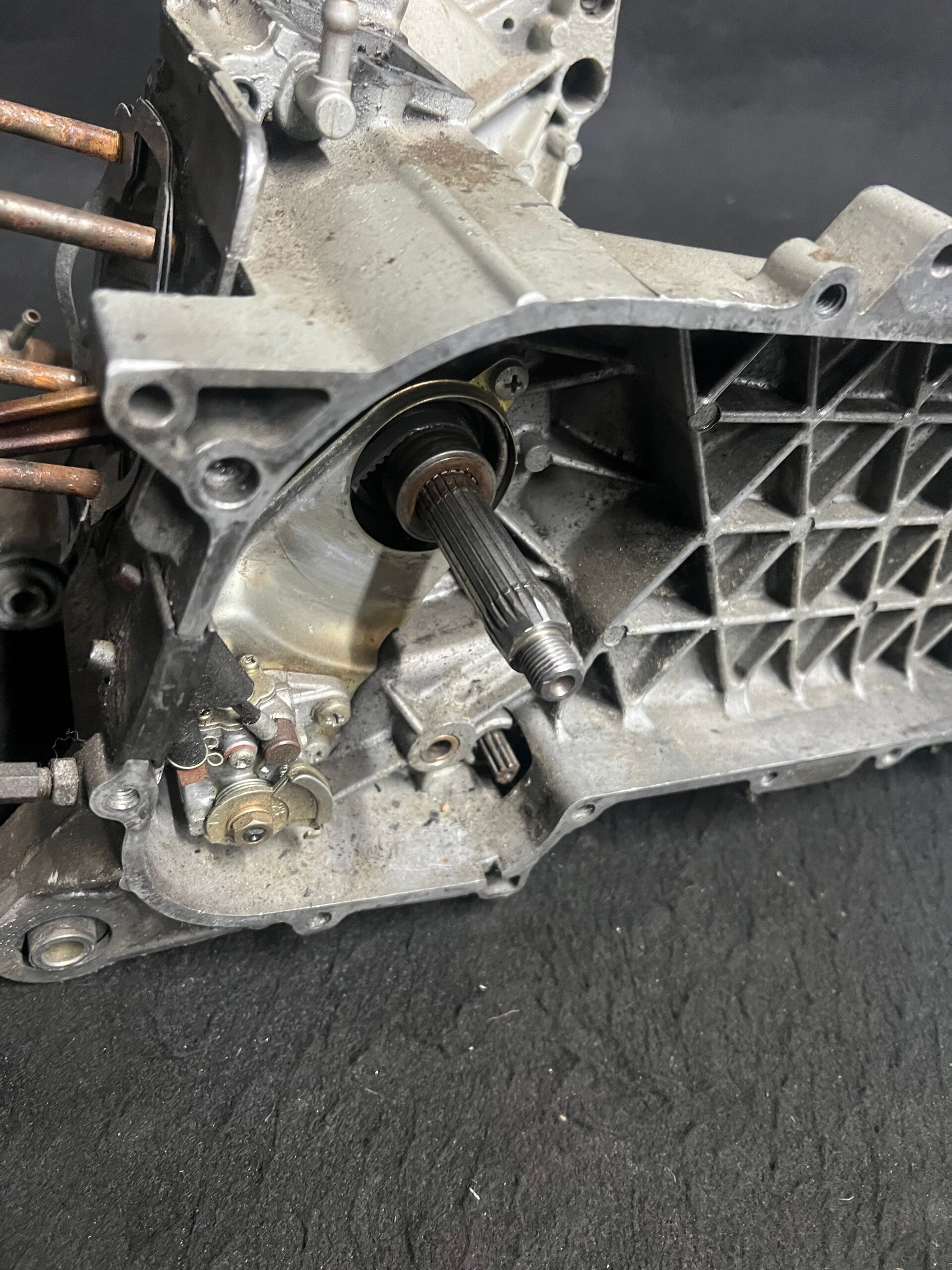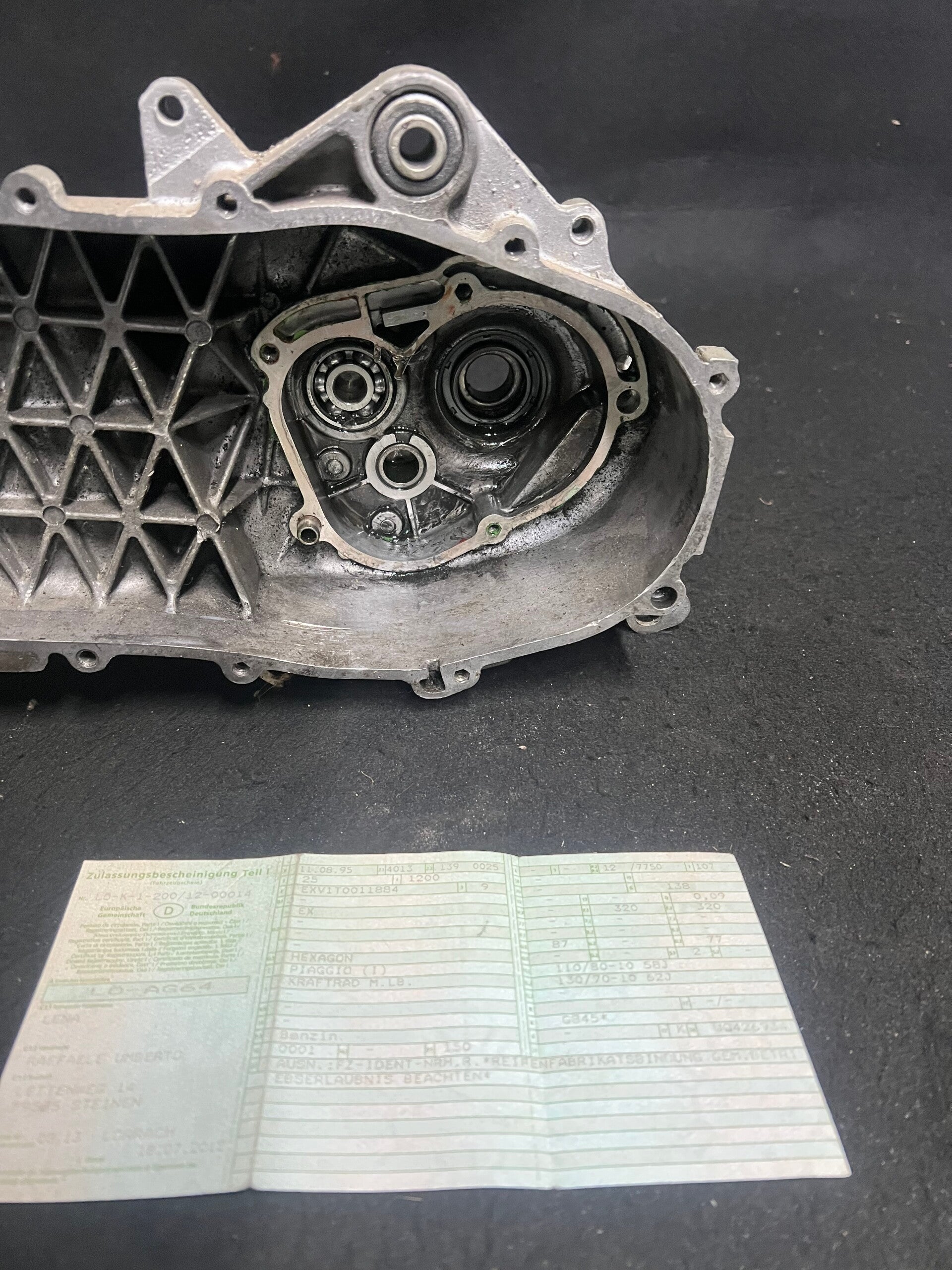 Piaggio Hexagon Carter exv mist bij de onselingkant een klein hoekje niet heel erg. Boven de Onsteking kant