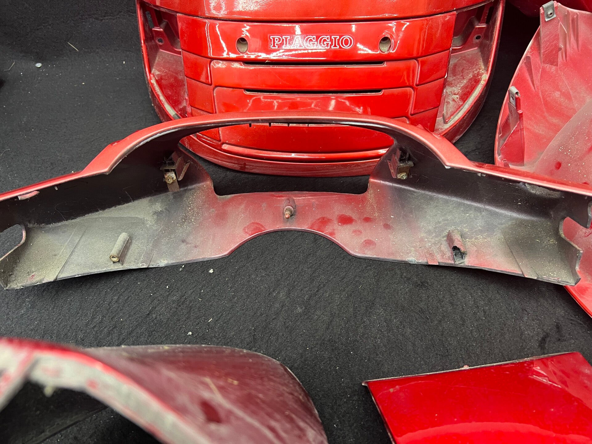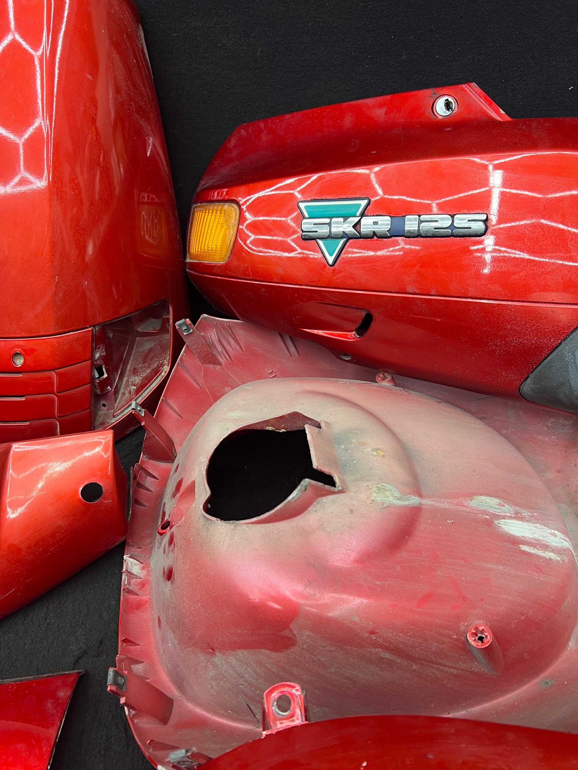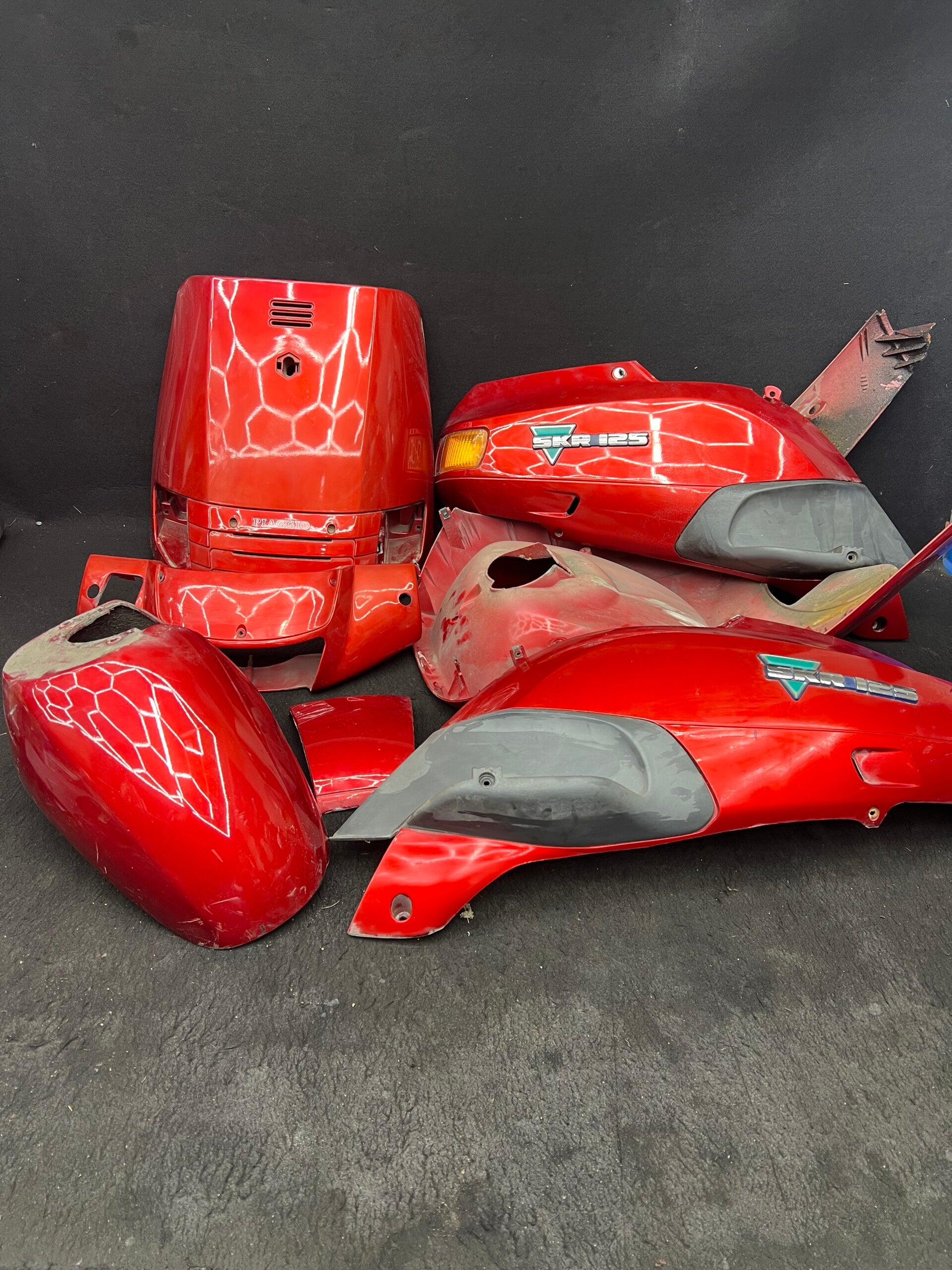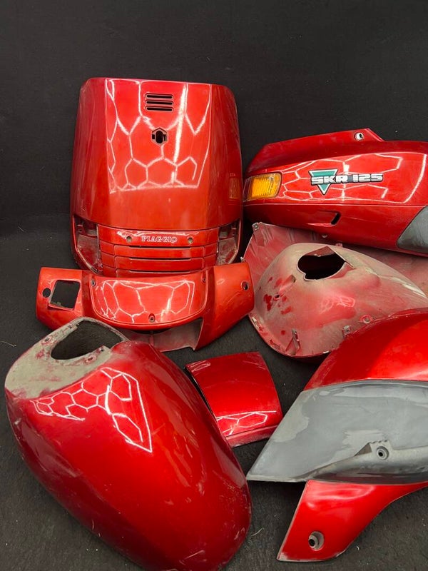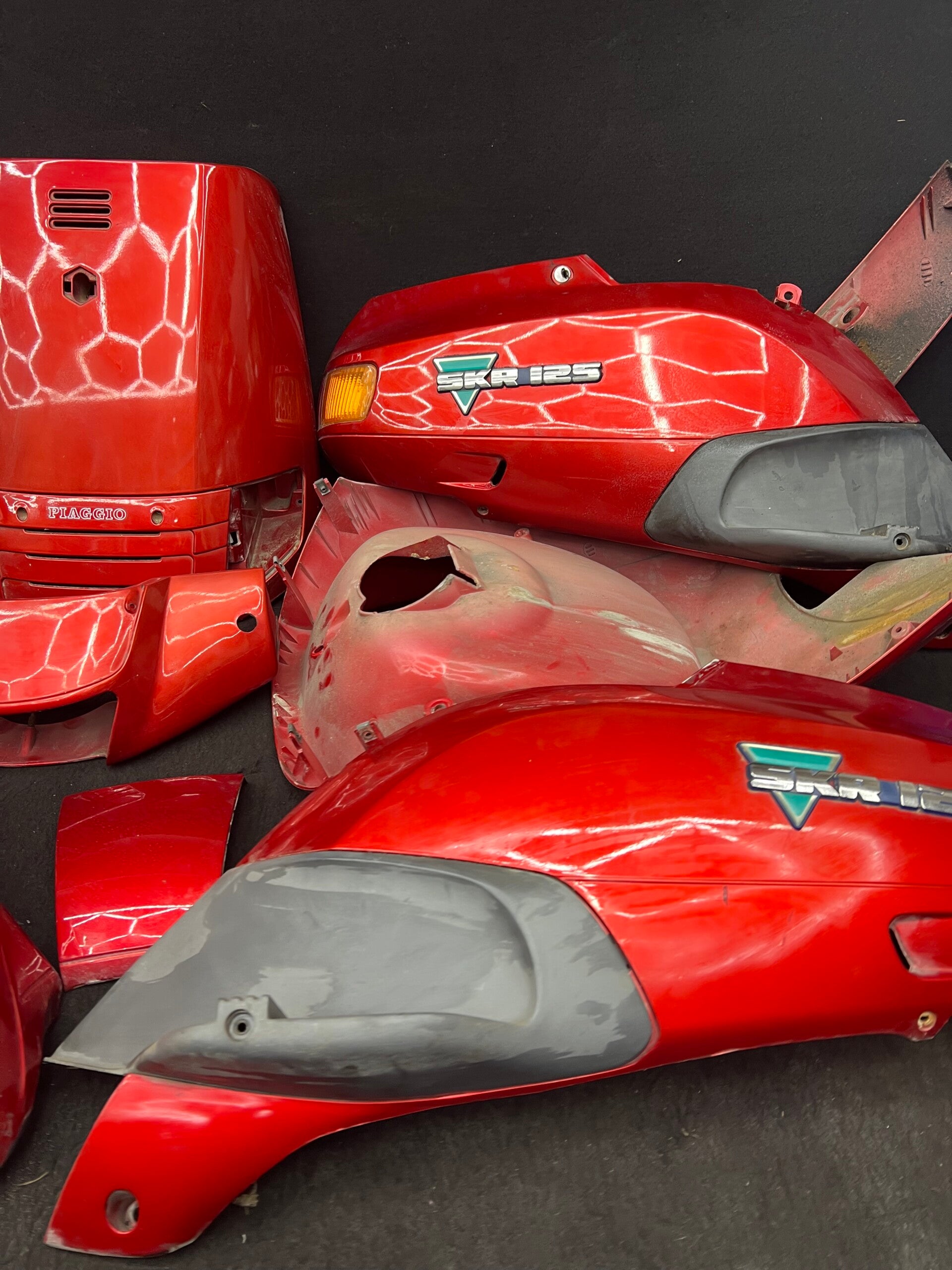 Piaggio skr 125 kappen set compleet binne en buiten let op heeft een plekje in de zijkap mist stukje rest netjes hier en daar wat sporen.