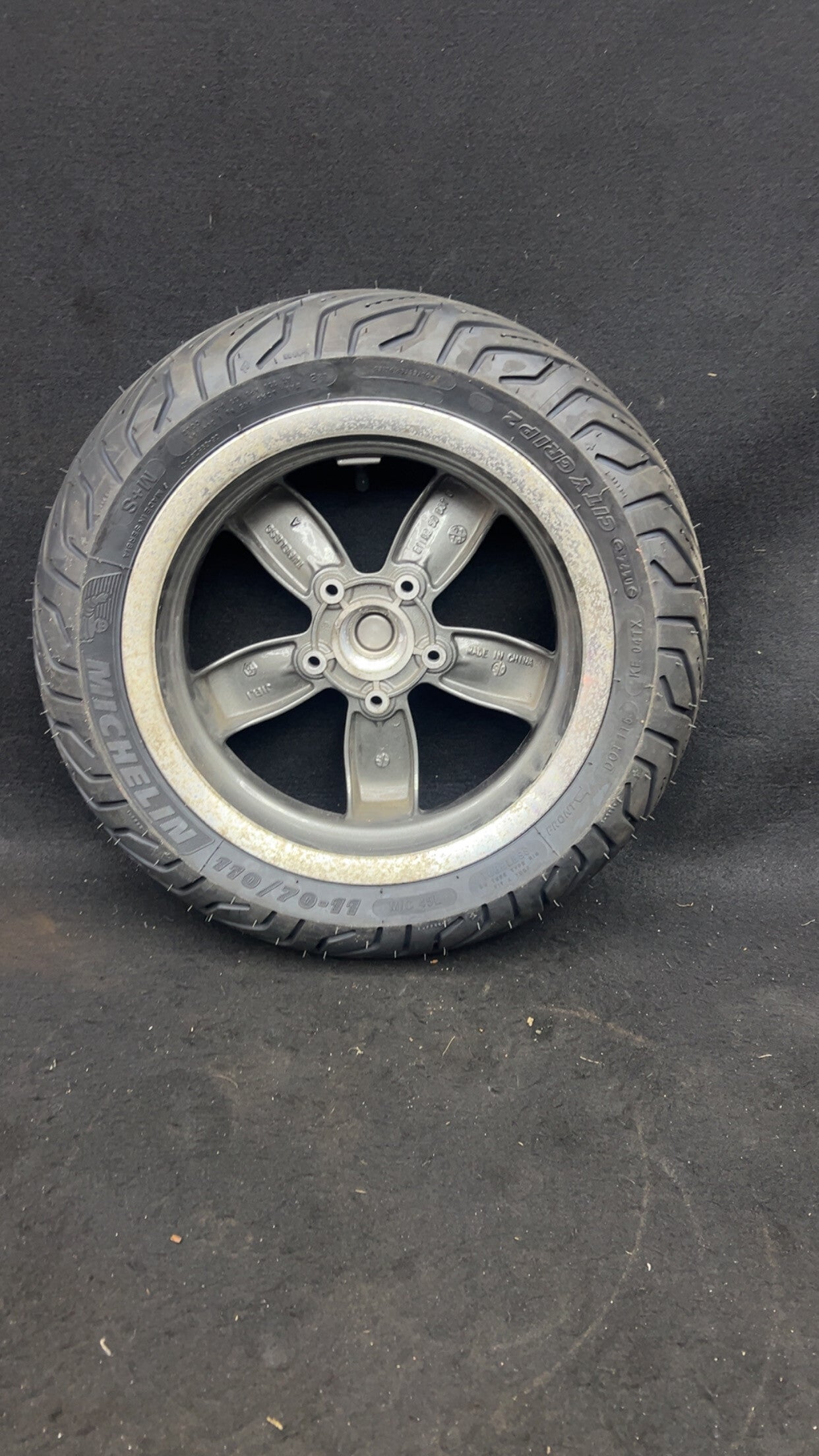 Vespa Primavera velg voor met nieuwe band micheling