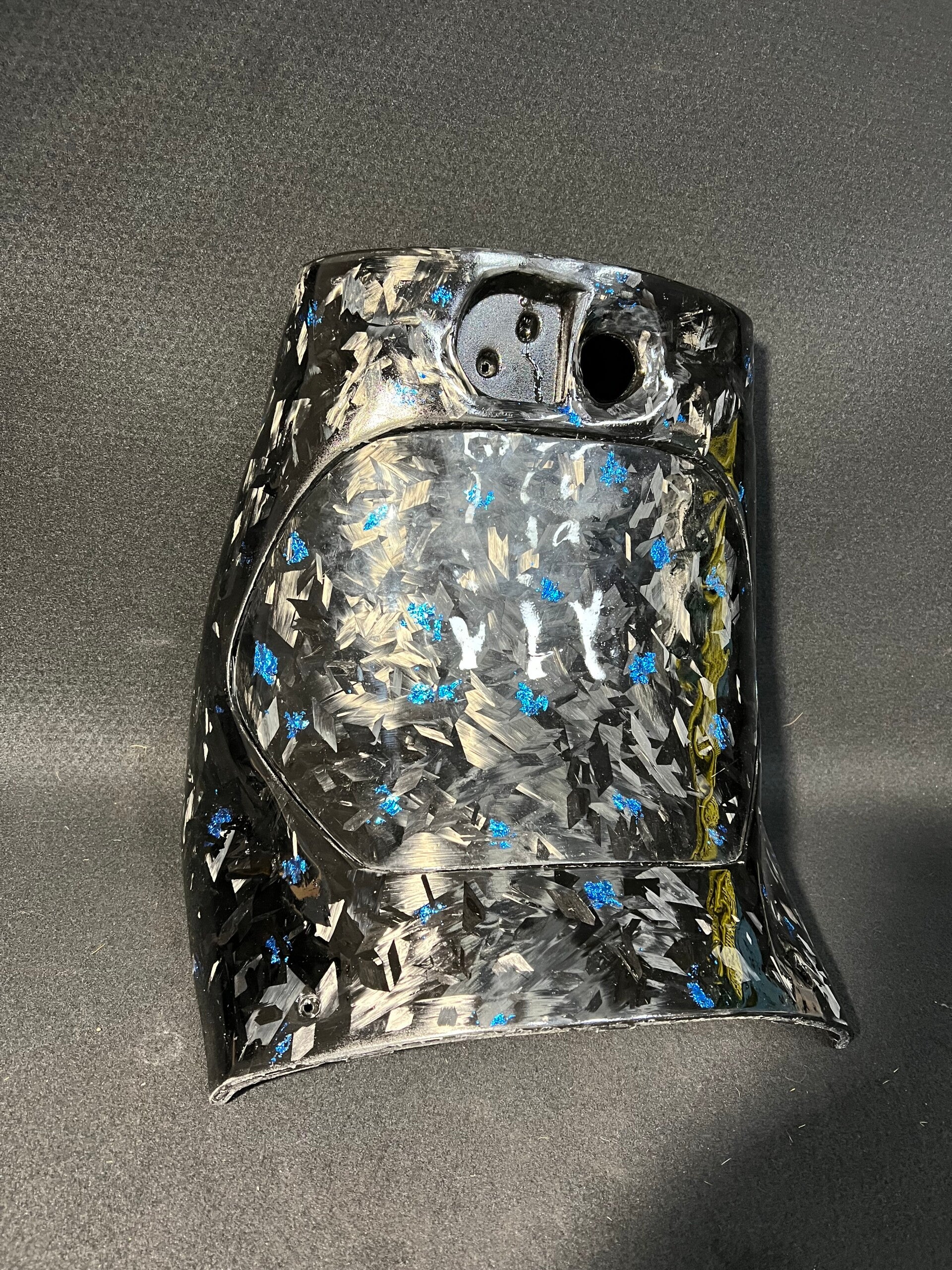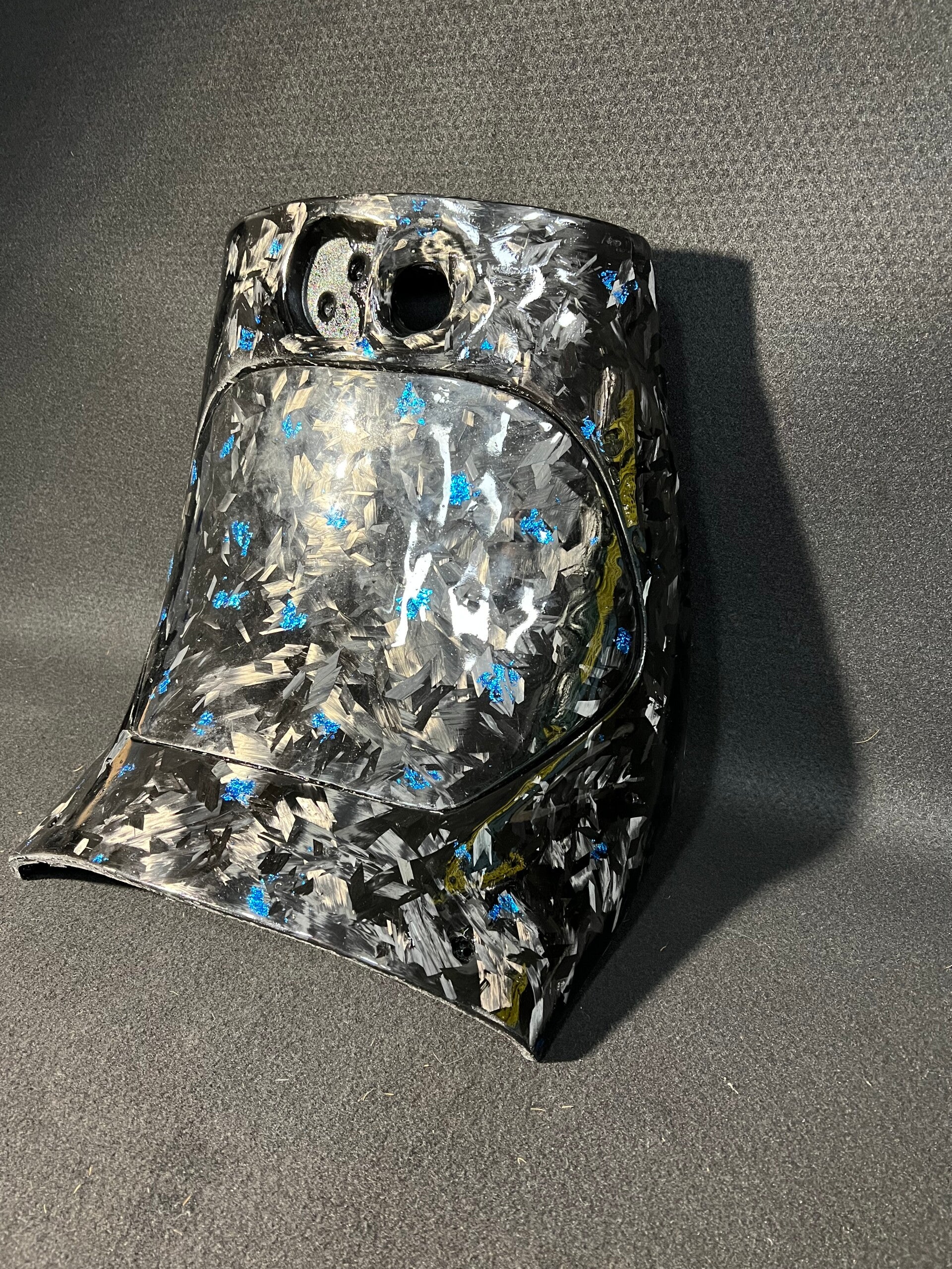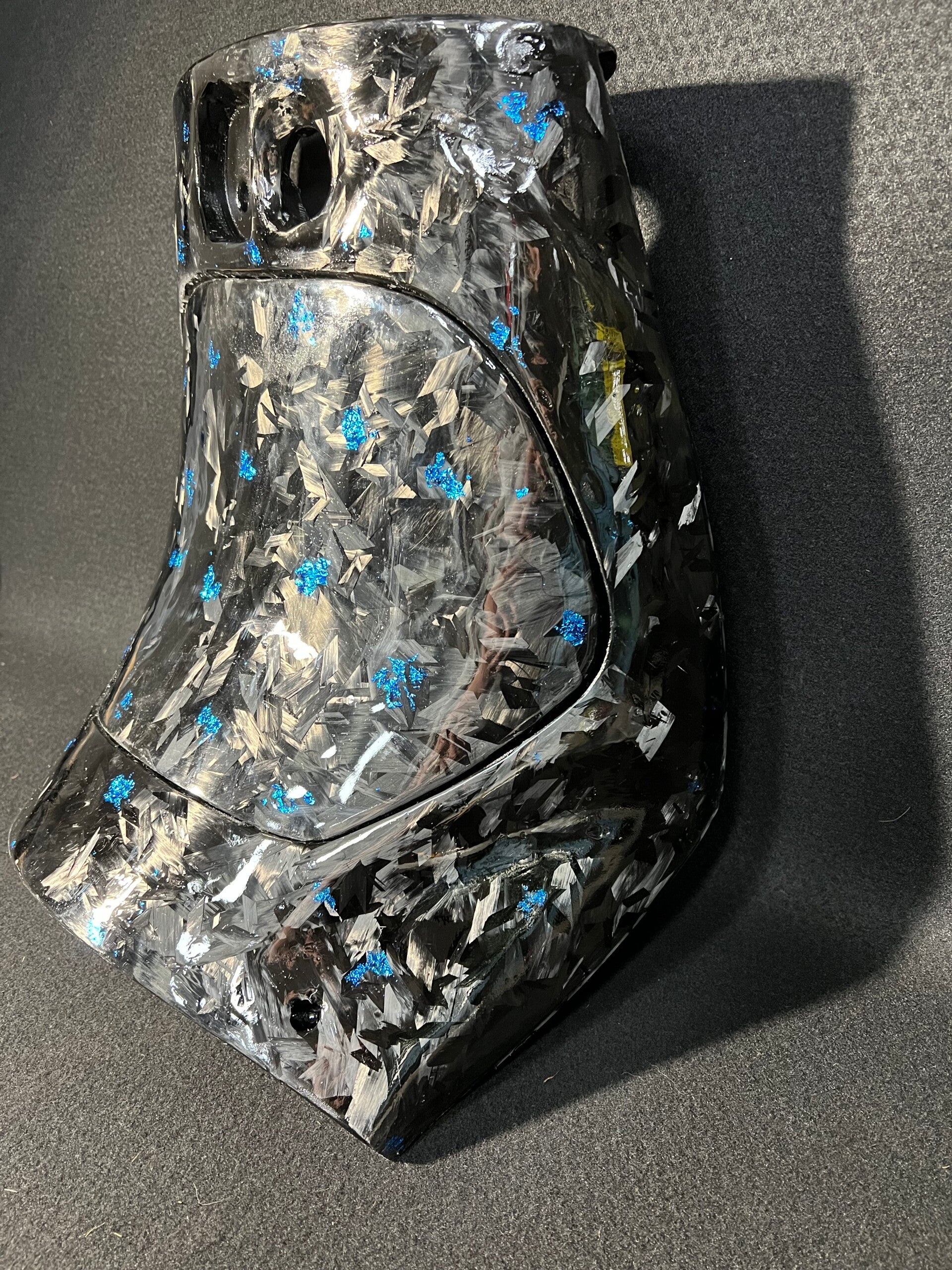 Kniekap zip forged Carbon lichtblauwe Flakes icl klepje